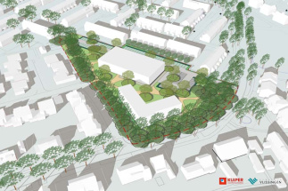 Onderschrift foto 2: Mogelijke invulling van de Dongestraat in Oost-Souburg met een kerngezondcentrum (rechthoekig gebouw) en 24 appartementen (v-vorm). © Gemeente Vlissingen / Kuiper Compagnons